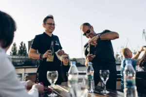 Szukasz wyjątkowego pomysłu na świętowanie w gronie przyjaciół? Zamiast klasycznej imprezy w klubie wybierz ekskluzywny rejs po Odrze! To niecodzienna okazja, by bawić się w sercu miasta, podziwiając zmieniającą się scenerię i rozświetloną panoramę Szczecina.
