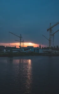 ✔️ Malownicza panorama Szczecina w blasku świateł odbijających się w wodzie
